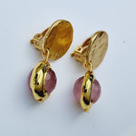 Des perles colorées à facettes ludiques pendent sur des clips légèrement martelés pour créer ces boucles d'oreilles.