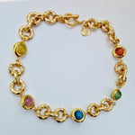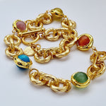 Collier élégant comprenant notre luxueuse chaîne à maillons ronds et une série de perles à facettes colorées. Conçu pour s'adapter directement à la clavicule, c'est le complément parfait pour rehausser n'importe quel look.