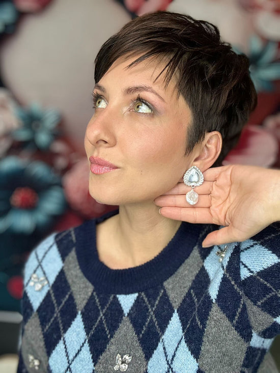 Boucle d'oreille pendante en forme de cœur et de perles plates
